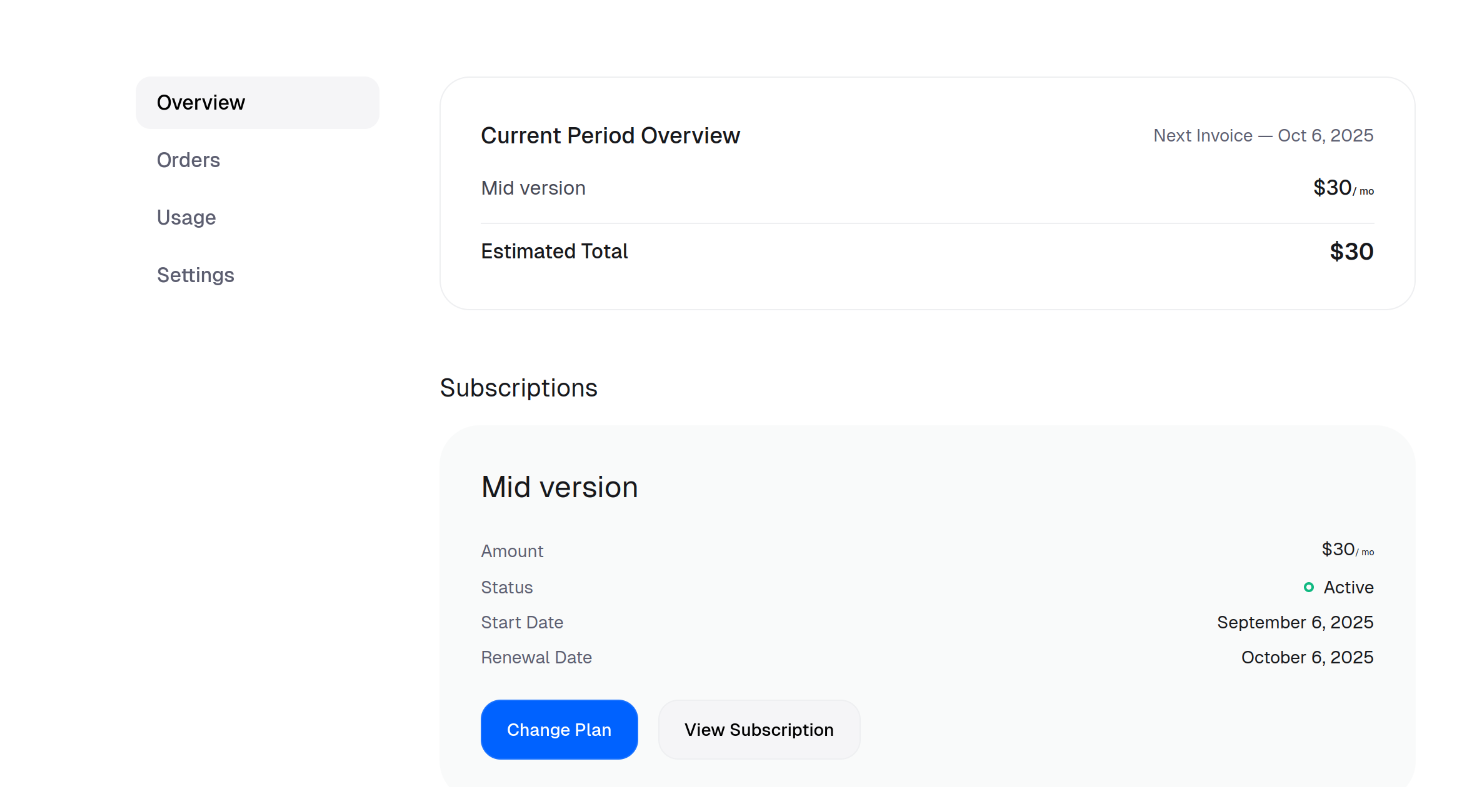 Note that merchants can disable customer-level upgrades or downgrades in the portal by toggling OFF Allow price change setting.